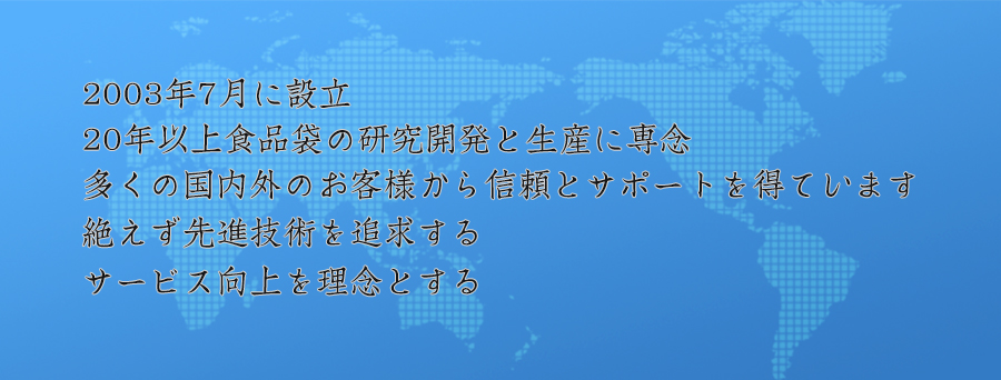 会社の密封袋工場の敷地面積は50000㎡で、従業員は400人余りで、その中で生産技術と品質管理に従事する人員は10%を占め、電子商取引の販売に従事する人員は15%を占め、製品の外販に従事する人員は2.5%を占めている。工場の配置は厳格にGMP生産環境設計と品質管理規範に従い、省エネ、高効率、環境保護生産要求の食薬包装生産職場と倉庫3棟の工場棟約43000㎡を有し、「吹膜、印刷、製袋、包装、実験室」などの生産と検査設備のいくつかの台/セットを備え、年間食薬レベルの「自己封袋とファスナー袋」シリーズ製品20000トン、売上高6000万ドルの生産と販売能力を備えている。
